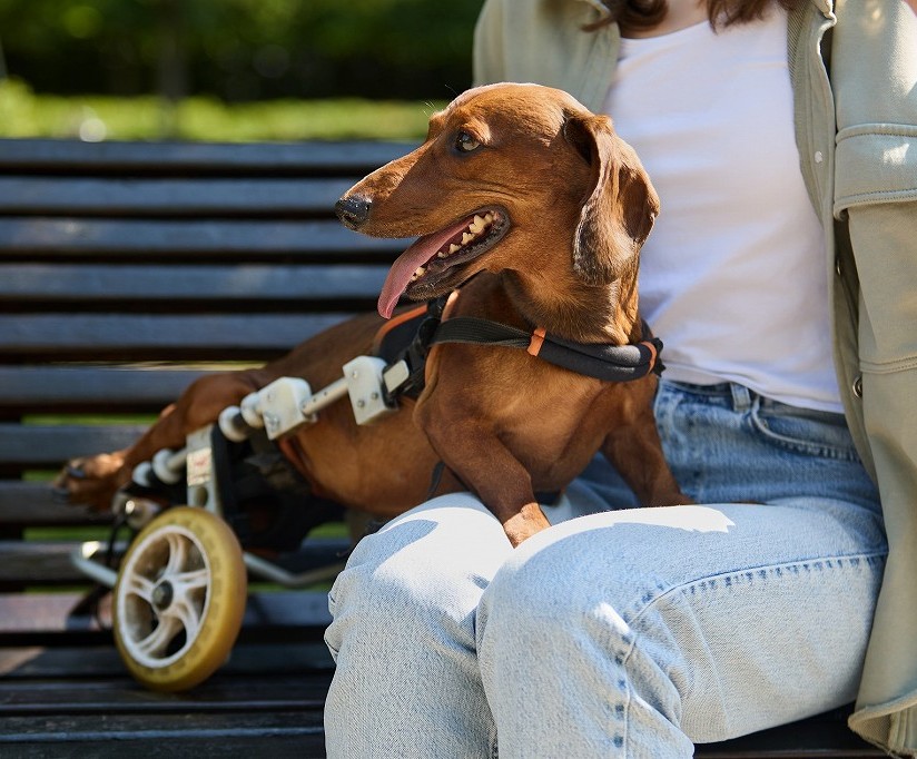 後ろ足が不自由なワンちゃんが自力で歩けるように、飼い主様と一緒に散歩できるように